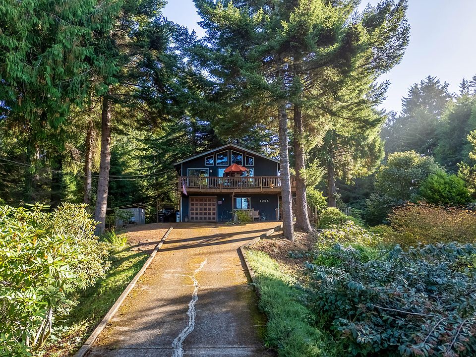 Charming Chalet-Style Home with Bay & Bridge Views! This home sits on a spacious lot and offers warmth, character, and stunning views of the bridge and bay. Inside, you'll find beautiful wood floors and inviting spaces filled with natural light. Step outside to enjoy a large deck perfect for entertaining or relaxing, a soothing water feature, greenhouse, and a private hot tub—your very own coastal retreat! Experience comfort, charm, and scenic beauty all in one exceptional property.