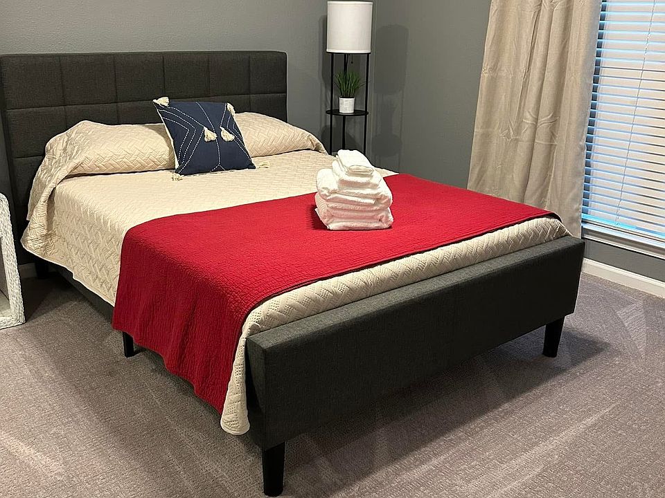 Private room with bathroom in 2 bedroom, 2 bath condo. Located in The Gates At Williams Brice, walking distance to the stadium and close proximity to downtown Columbia, USC campus, hospitals, and USC Medical School. The room is available for mid-long term rental (1-12 mos at at time) with lease rates varying with term. The condo complex is well maintained, safe, and has pool, hot tub, and gym available to tenants and owners. Tenant will have a designated parking space in the condo parking deck on the same floor as the unit. Room is furnished with bed, dresser and side table as well as a work desk. Condo has fully furnished kitchen with den, and spacious balcony. The complex is quiet with a wide variety of tenants and owners - from students to young families, to retirees.