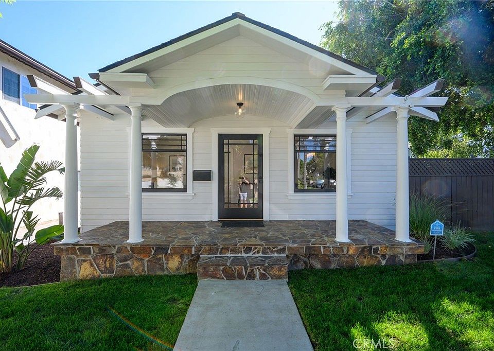 Enviably set on a coveted corner lot on a beautiful, tree-lined street, this single-level Vista Del Oro home is a must see! Through the glass-inlaid entry, discover a stunning interior where designer finishes are on show, from the paint color and fixtures to the exquisite crown molding and durable white oak premium flooring. Large windows frame delightful neighborhood views while bathing the main gathering areas in natural light. Share favorite meals in the chandelier-lit dining alcove where French doors inspire lively alfresco evenings. The impeccable kitchen features brand-new stainless steel appliances, handsome cabinetry, a subway tile backsplash, and sleek quartz countertops.
