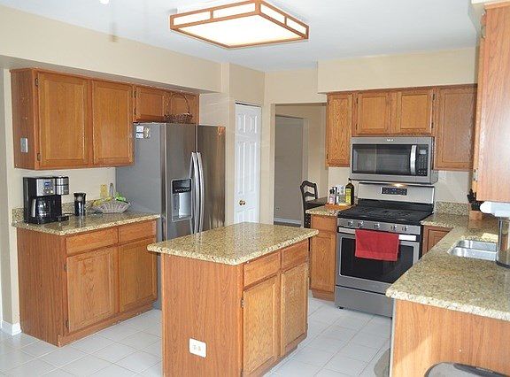 Huge 3200+ sq ft home with a country-sized covered front porch in Cobblers Crossing subdivision. Light bright and airy throughout with big spacious rooms granite counters in Kit, new SS appliances. 2 fireplaces, expansive Living Rm & Family Rm w/vaulted ceiling and skylights. 2nd floor Laundry room! Recreation Room in English Walkout lower level that leads to a big cement patio. Bonus rooms on main level and lower level 3.5 baths Master bedroom w/walk in closet, luxury master bath w/whirlpool tub & separate steamer shower, double sink w/maple cabinets. All bedrooms on 2nd floor have ceiling fans. 5th bedroom and full bath in lower level is a great in-law arrangement. Open floor plan flows nicely on all 3 floors. Fenced yard w/cement patio & huge expanded multi level deck too. Wonderful mature neighborhood with beautiful trees Great NE Elgin location just a few minutes to I90 on/off ramp. Total WOW factor in size and condition. Come see this great A+ value!