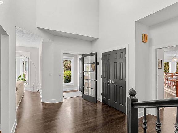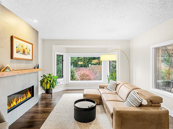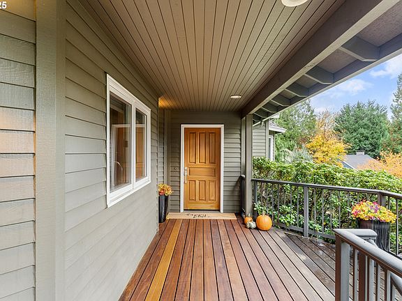 Perfectly situated between Lake Oswego and downtown Portland—just minutes from Lewis & Clark College and the wooded trails that make Tryon Creek State Park one of the Pacific Northwests finest—this stunning designer home blends modern luxury with the peaceful feel of nature. A grand curved staircase welcomes you upon entry, leading to sun-filled living spaces finished with hickory floors, high ceilings, and solid-core doors. The remodeled gourmet kitchen connects beautifully to the dining and living areas, ideal for entertaining.The main-level bedroom (currently used as an office) opens to a whimsical backyard with a private trail leading to a pond and neighborhood green space. Upstairs, the primary suite is a serene retreat featuring a sitting area, double vanity, heated floors—including the shower—and a spacious walk-in closet. Additional highlights include solar panels, a Daikin high-efficiency furnace with iWave air purification and home smart controls, an oversized garage with abundant storage. From the Brazilian hardwood deck, enjoy peaceful sunrise views through the evergreens—this home lives like a modern treehouse in one of Portland’s most beautiful and sought-after neighborhoods. Welcome Home.