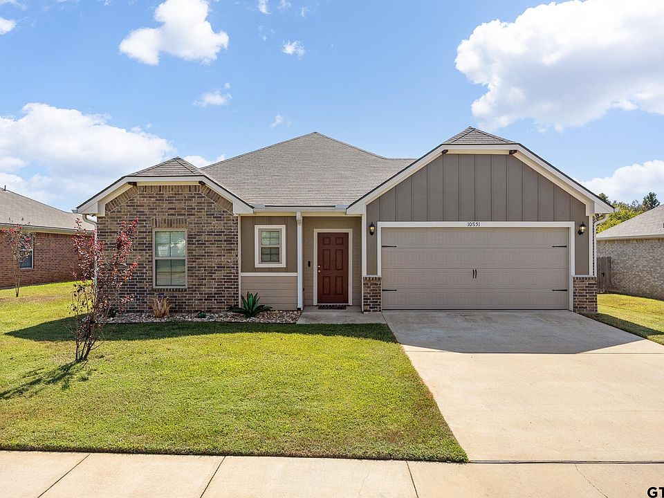 Welcome to 10851 Cactus Trail in the heart of Flint, Texas! This charming home offers the perfect combination of modern comfort and serene living. Nestled on a spacious lot in a quiet neighborhood, this 4-bedroom, 2-bathroom home is an ideal retreat for families, first-time buyers, or anyone looking for peaceful living near Tyler. Step inside to find a bright and open floor plan with plenty of natural light. The living room is cozy yet spacious, perfect for entertaining guests or enjoying family time. The kitchen features updated appliances, ample counter space, and a breakfast nook with a view of the backyard, making meal preparation both enjoyable and convenient. The primary bedroom offers a tranquil escape with an ensuite bathroom, complete with a walk-in shower and plenty of closet space. Three additional bedrooms are generously sized and share a full bathroom, making it easy to accommodate family or guests. Outside, you'll find a large fenced backyard—perfect for pets, kids, or hosting summer barbecues. With a two-car garage, plenty of storage, and a prime location close to Lake Palestine and Tyler, this home offers everything you need for comfortable living. This neighborhood also provides a beautiful children's park to take your kiddos to! Located in the desirable Flint area, this home is just minutes away from shopping, dining, schools, and outdoor activities. Don’t miss your opportunity to make 10851 Cactus Trail your new home! Fridge, green egg, and security system also convey.