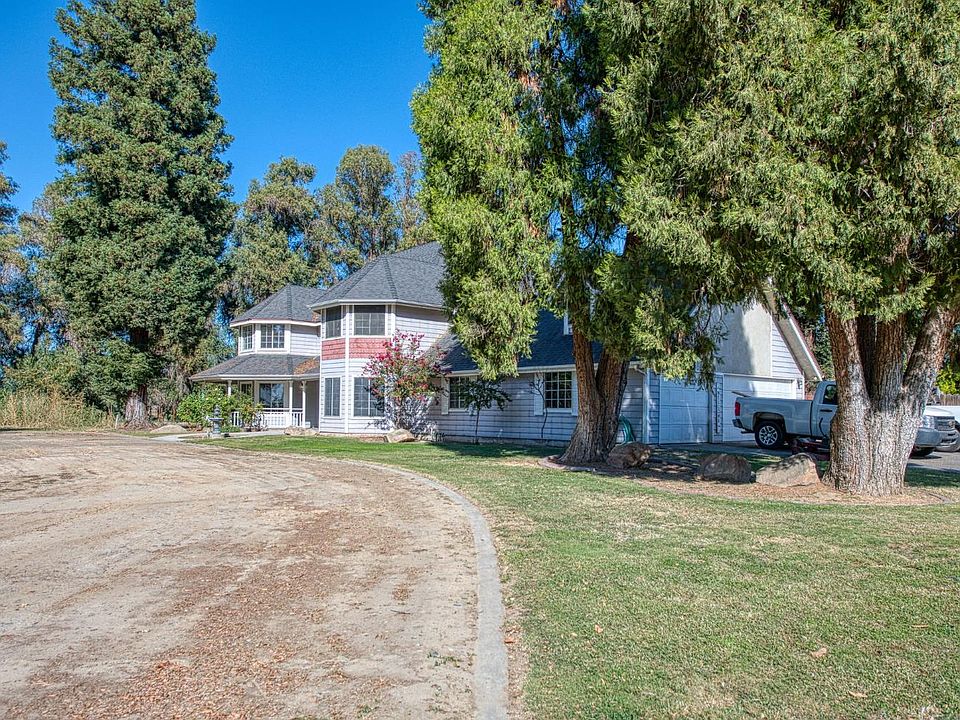 Stunning custom-built home on 2.14 acres just minutes from the City of Selma!This spacious 4-bedroom, 3-bath home offers 2,878 sq ft of comfortable living space plus a 713 sq ft 3-car garage. Enjoy the open and inviting layout featuring a large family room with high ceilings, separate living and dining areas, and a bonus game room/bar perfect for entertaining. The home includes one bedroom and full bath downstairs, and three bedrooms with two baths upstairs. The oversized primary suite features a cozy fireplace, a luxurious master bath, and private balcony overlooking the beautiful backyard. Step outside to your own resort-style retreat complete with a sparkling pool and waterfall, mature landscaping, expansive patio, and plenty of green space for family gatherings and outdoor fun. The property also boasts a massive shop, just under 2,000 sq ft with high roll-up doors for RV or boat storage and a second-level loft for extra storage or workspace. A rare opportunity to enjoy country living with city convenience, this property truly has it all!
