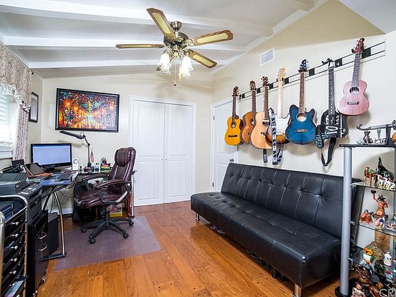 This great home situated In Granada Hills is centrally located and it offers a flowing open floor plan with 4 spacious bedrooms, and 2 baths, 1,374 square feet of living space, master bedroom with private bath, spacious living room with high vaulted ceilings and recessed lighting, brick fire place, dining room with wood floors, ample kitchen with tile counters and full backsplash, dual basin sink, built-in appliances, direct access to bonus sun room ready to entertain, ceiling fans throughout, central air & heat, newer interior doors, two car detached garage with automatic garage door opener and RV access.