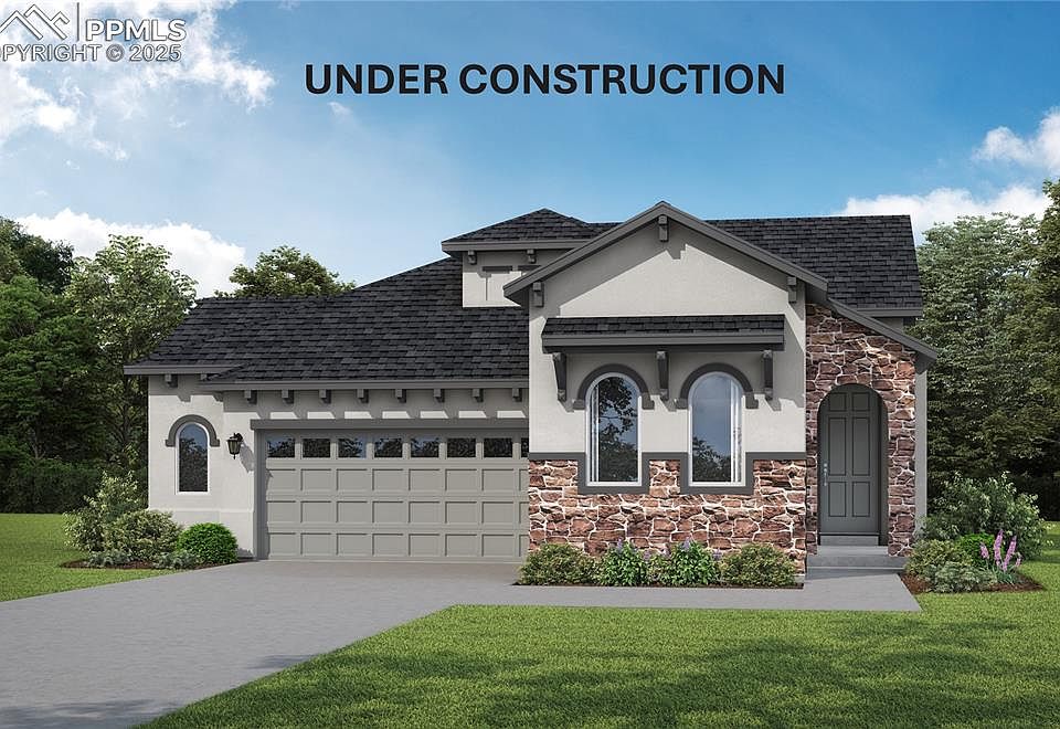This popular ranch plan has 4 bedrooms, 3 bath, and 2 car garage. The spacious kitchen features an upgraded Gourmet kitchen with granite countertops, GE Energy star stainless appliances to include gas cooktop, double wall ovens, microwave above range, dishwasher, designer staggered cabinetry, island with pendant lighting, and large pantry. Great room features 12’ ceilings and fireplace with tile surround complimented with LVP hardwoods at entry, kitchen, dining and great room. Master Suite has a sitting area, coffered ceiling, 2 walk in closets and adjacent 5 pc bath. The finished basement with 9 ft ceiling, has 2 bedrooms, bathroom and recreational room for additional space to entertain. Additional features include AC, wrought iron railing at stairs, dual vanities in master, front yard landscaping and more. This home was designed for performance and energy efficiency and will receive a HERS score once complete. As a result, you should see savings on your utility bills. Schedule your appointment for viewing today! PLEASE NOTE: Photos and videos are of different home/ same floor plan and finishes may vary.