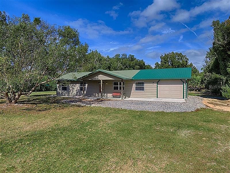 Lovely Country Home sitting on 3 gorgeous tree-studded acres with underground utilities, fenced perimeter & beautiful paddock for your livestock or horses. Open Great Room plan combines a huge Living area with spacious eat-in Kitchen/Dining area with 18" Designer tile throughout the home. Home offers 3 full baths - one wheelchair accessible with an elegant tiled shower with overhead rainfall style shower. Location is just N of quaint, charming & historical towns of Eustis, Mount Dora & Tavares. Whimsical design & optional furnishings are perfectly themed for this country oasis! A mere 5 minutes from Ocala Nat'l Forest & easy commute to shopping & entertainment complexes of The Villages. This is a literal boating/fishing/nature Paradise with quality Estates, Farms, Ranches & Ranchettes. Surrounded by myriad conservation areas & around the corner from boat ramp to 4000 acre Lake Yale. Fishing, Birdwatching, Hiking & Horseback Riding trails at 1000 acre Sawgrass Island Preserve on Lake Yale & 10,000 Acre Emeralda Marsh which borders Lake Griffin on the Legendary Harris Chain of Lakes & Ocklawaha River! Home maintained beautifully & barely lived in as a winter home. An 840SF 3-Section Metal Ag Building with feed & tack storage area, a stable area & a large center section with a 14' tall ridge & 19' depth for RV or trailer storage. Property is Zoned Agricultural for multiple agricultural pursuits. Don't miss your opportunity to own this unique & wonderfully manicured country estate!