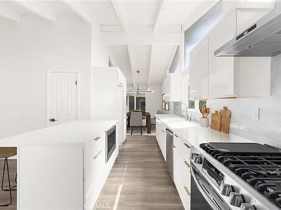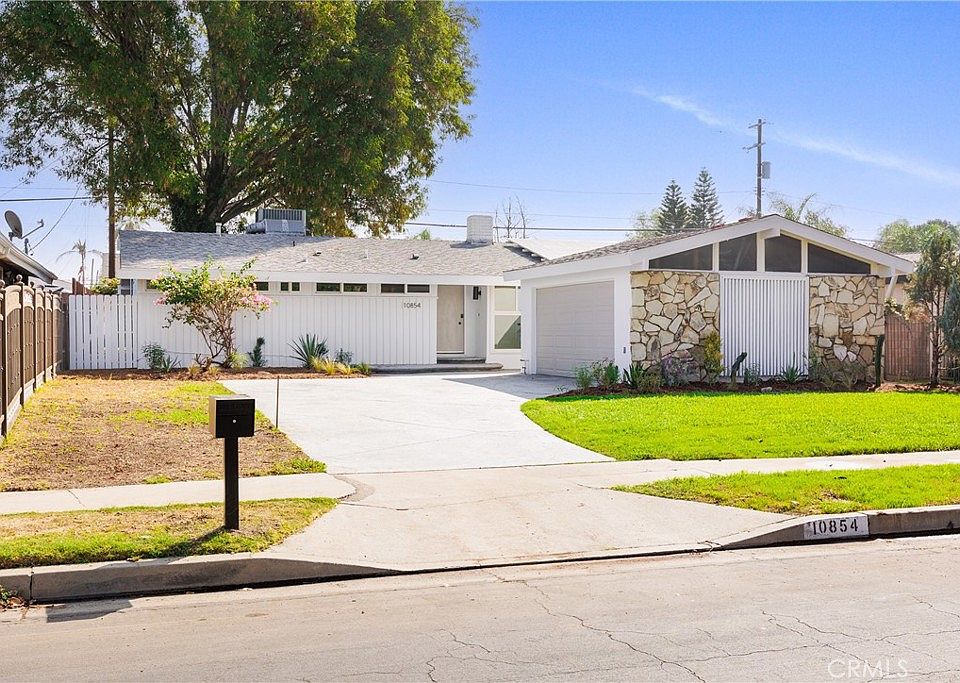 Very rare opportunity to own a Mid-Century Modern residence designed by renowned architects, William Krisel & Dan Palmer. Residence is located on a sought-after quiet street in the city of Granada Hills. Run, don't walk to this Masterpiece of history. The interior incapsulates many original Mid-Century features such as ceiling to floor windows spanning the entire length of the back overlooking the rear yard, invoking the indoor-outdoor feel throughout. Special modern features also capture the beauty and elegance throughout. The living room is accented with a tiled wall decorative fireplace featuring an alcove beside it. Formal dining room awaits your dinner parties with easy access to the yard via newer sliding glass doors. Open & naturally lit galley kitchen has new custom cabinetry, quartz counter tops, built-in appliances and a breakfast bar ready for your morning wake-up coffee ritual. Through double doors you're also greeted by the formal family room also accented by a stone decorative fireplace, wood beam vaulted ceilings and a new sliding glass door that leads to the backyard. The hallway will lead you to the indoor laundry area and 2 spacious bedrooms with all new lights fixtures, ceiling fans and new windows that bean throughout the rooms with natural light. Hallway bathroom has been fully redesigned with new vanity with dual sinks, designer tile, and new tile for the tub/shower combination. The primary suite offers vaulted ceilings, dual closets and a private entry to the 3/4 bathroom accented with designer tile, spacious standup shower with custom glass door, new vanity and modern fixtures. Once you step into the rear yard you will be greeted with a towering shade tree, open-air patio's and a spacious yard that is ready for your entertaining events. Additional upgrades also include complete exterior and interior paint, all new flooring throughout, remodeled kitchen and bathrooms, and all new modern fixtures throughout. If you are looking for a Mid-Century Modern home, you just found it! Welcome home!