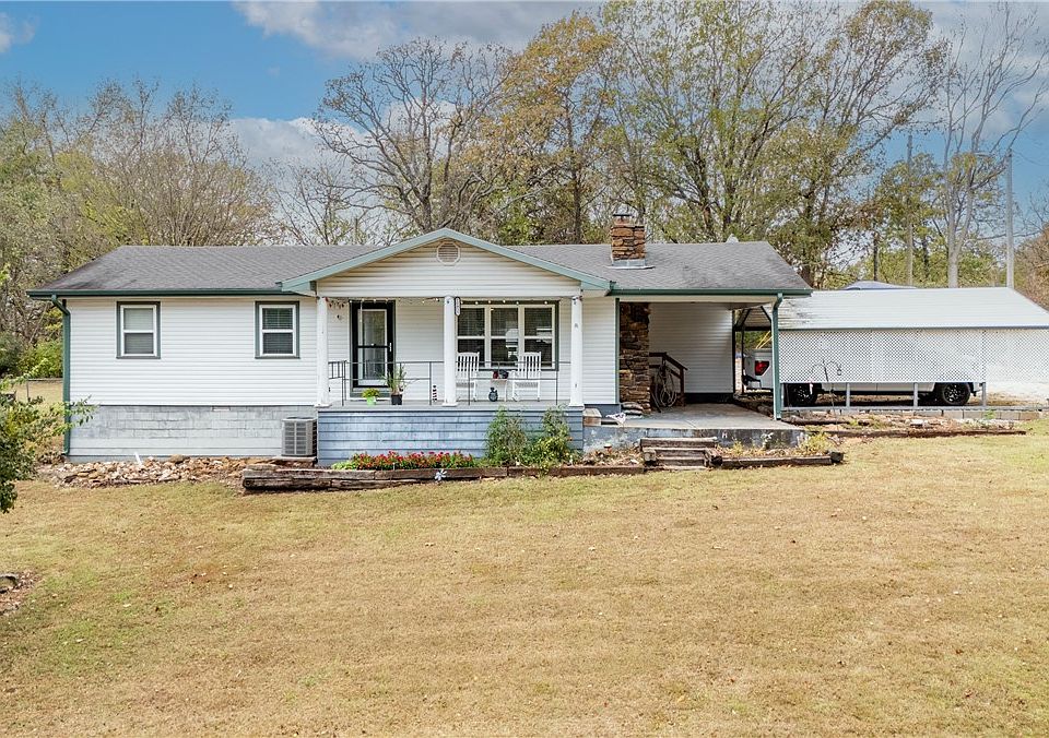 This charming farmhouse-style cottage is the perfect blend of comfort and character. As soon as you step inside, you’ll feel right at home with its bright, airy atmosphere and thoughtful updates throughout. The spacious 3-bedroom, 1.5-bath layout includes a large eat-in kitchen and a cozy living room with a natural stone fireplace and gas logs. Outside, the 1-acre lot offers plenty of privacy with mature shade trees, while the backyard is fully fenced for pets and kids. The property also features a 30x24 metal shop with a large roll-up door adds tons of storage and workspace, and a newly built shed with electricity, insulation | paneling. Other notable highlights are 2023 stainless appliances, 2021 water heater, installed gravel driveway + culvert, and fresh landscaping. Located just off Hwy 62 for an easy commute to town, this move-in ready gem is waiting for you—don’t miss out on your piece of paradise!