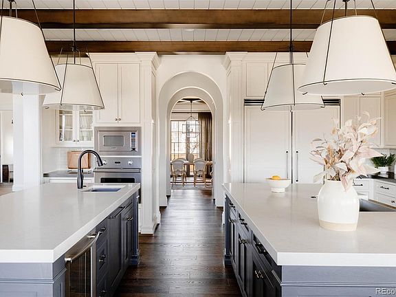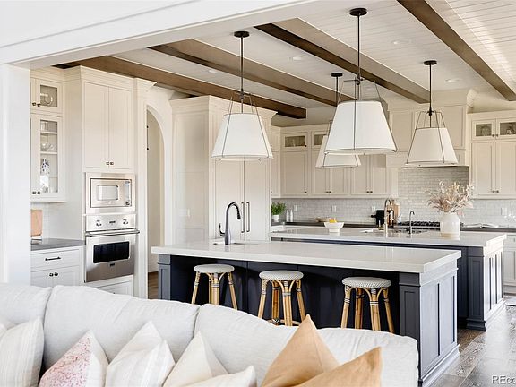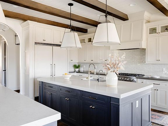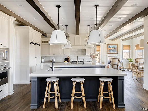 Experience ultimate luxury in this BackCountry dream home, nestled in the prestigious gated community of Highlands Ranch. This residence seamlessly combines sophistication and comfort, boasting panoramic mountain views and a captivating downtown glimpse from the upper deck. With five outdoor entertaining areas, it's perfect for hosting, prioritizing privacy and opulence.Each bedroom features its ensuite bath, ensuring a retreat-like experience. The heart of the home is a culinary haven with professional chef built-in appliances, double island, quartz counters, custom stacked cabinets, and Clé Tile accents. Custom beams in the dining room foster an open atmosphere, while built-ins grace the living room, basement, and office. Dual staircases and designer lighting add uniqueness. The primary bathroom is a spa-like sanctuary with a steam shower, custom vanities, Calcutta Quartz counters, a European free-standing tub, and a custom primary closet. Crafted by Weatherly Homes, this 5-bedroom, 8-bathroom residence includes an office and 2 laundry rooms. The property features an oversized 4-car garage with 2 electric car chargers, Kinetico Whole House Water Filtration System, 6 fireplaces (including 2 outdoor), and a Level 3 Impact Resistance Tile Roof. Entertain or unwind in the walk-out basement, featuring a professional gym and a 2-person sauna. Luxury extends to a high-end dog washing station with an extra washer and dryer for furry companions. Meticulous craftsmanship is evident in the hand-troweled pulled stucco on the exterior, complemented by natural stone accents. This exceptional property transcends mere residence, offering a lifestyle of unparalleled luxury and comfort.