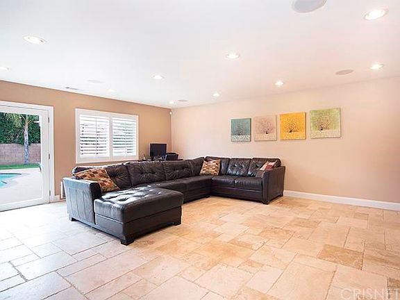 Light & bright beautiful pool home for the active family. This is that perfect home for the growing family that loves having people over for pool time, BBQs, or just a bit of wine by the fire pit. Bring the fun inside and enjoy the open floor plan of this modern, and tastefully remodeled home. The kitchen is a remodeled masterpiece featuring quality, MODERN cabinetry stained in dark espresso to match the luxurious granite counters that surrounds much of the galley. Accenting the natural light that floods the room, the ceiling has recessed LED lights. TOP CHEFs will love the stainless steel, top-of-the-line six burner gas stove and stainless steel sub-zero refrigeratorThe master has a walk-in closet and all the bedrooms have hard wood floors. Plus, each bedroom has it's own updated bathroom. The master bath features a rain shower.Features: Plantation shutters. 220 elec vehicle charger. Instant H2o heater. Newer HVAC. Surround sound. Granite counters in kitchen & baths. Versaille, chiseled Travertine flooring. Much more!SAVE $$$! No need to pay up to $35k per year, per child for private school. THIS home is located within the boundary of two of LAUSD's BEST schools, Darby Elementary & Granada Hills HS (NATIONAL Academic Decathalon Champion!).