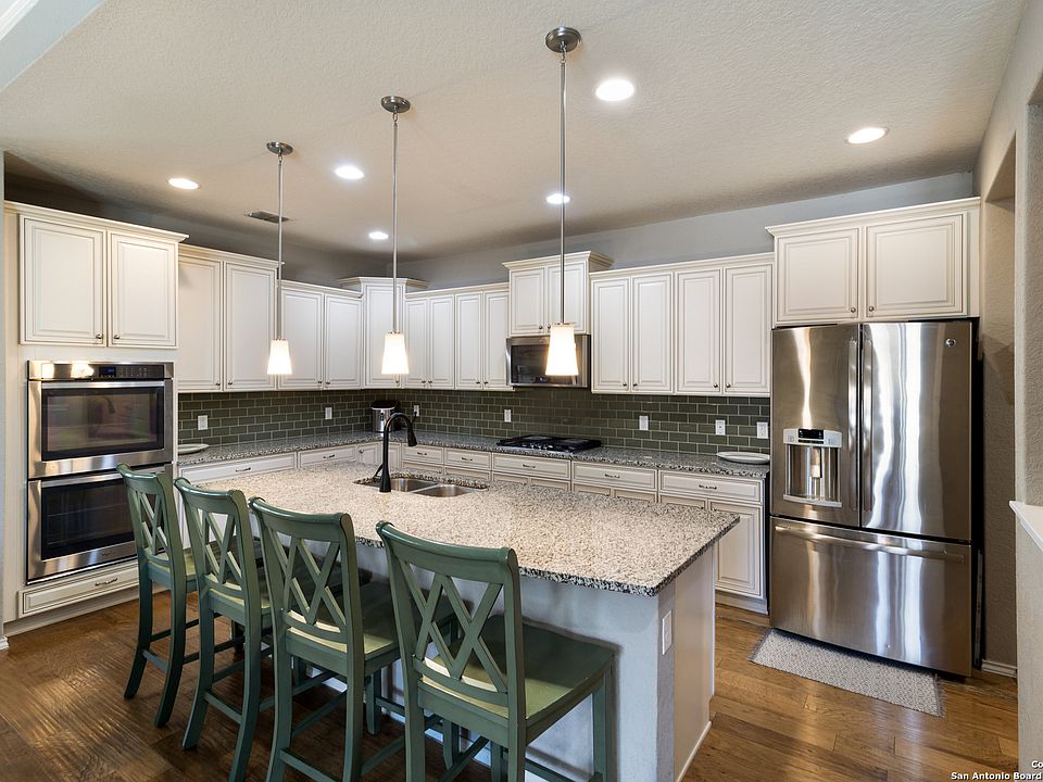When you choose to work with our preferred lender, they're offering up to 1% of the loan amount (not to exceed $5,000) to help with your closing costs or buy down your interest rate! Enjoy all the luxury of newer-built communities without the traffic headaches of 1560 or Galm Road. Experience the charm of the Lantana Oaks community with this exquisite 3,276 sqft. home nestled in desirable Helotes, TX. This home's design of updated features and classic charm set it apart from anything available on the market today at this price point in this area. As you walk up to the home, you're immediately greeted with an upgraded brick walkway at the front entry providing a touch of exclusivity even before you step inside. Upon entering, you'll find sleek, hand-scraped wood floors inviting you in and flowing throughout the expansive, 1st floor, open floor plan. Soaring ceilings at the entry and 9-foot ceilings throughout create a bright, airy ambiance. To the left of the entry, you'll find a well appointed guest bedroom, with a full bathroom conveniently located right next to the bedroom, providing privacy and easy access away from the main living areas. Perfect for visitors, multigenerational living, or a home office. The bright and open kitchen is a feast for the eyes and a home chef's delight! showcasing elegant granite countertops, sleek and unique white cabinetry, a gorgeous backsplash you will not find at this price point anywhere in the area, gas cooking, double ovens, and a stylish kitchen island with a gathering bar at the heart of this amazing home. It's perfect for casual dining, entertaining, or simple meal preparation. Adjacent to the kitchen, discover a convenient study nook, ideal for remote work or homework. It also offers flexibility as a prep area or would make a great coffee or cocktail bar. The kitchen, living, and dining areas flow together seamlessly, creating an ideal space for entertaining. Two spacious family rooms-one upstairs and one downstairs-boast soaring ceilings, abundant natural light, and are wired for theater sound, perfect for relaxation or hosting guests. The primary bedroom is tucked away at the back of the first floor for added privacy. This serene retreat features room for a sitting area, an entryway closet, and an ensuite bath with a huge double vanity, separate shower, garden tub, and an expansive Texas-sized walk-in closet-one of the largest in the community. Upstairs, discover a second living area wired for theater sound, along with three additional bedrooms. One fo the bedrooms has an ensuite bath, and the other 2 bedrooms have a jack and jill style bathroom for added functionality, and providing ample space for family and guests. The oversized 19' x 22' two-car garage includes heavy-duty shelving that can remain for extra storage, and an inviting and functional mud space off the garage entry, coming into the kitchen and laundry area adds convenience. Step out back to your private oasis-an east-facing backyard that avoids the afternoon sun, featuring a large covered patio perfect for barbecues and gatherings. This corner lot home can allow side access to the backyard, perfect for boat or RV owners. Additional Features: * Stone front and 4-sides brick exterior for enhanced curb appeal and improved maintenance. * Kinetico water softener is included for added comfort and appliance longevity. * Two water heaters for consistent hot water supply. * Two separate thermostats for efficient climate control. * Plumbing for a utility sink in the laundry is ready to go right behind the sheetrock. * Multiple linen closets and easy attic access for additional storage. * One of the two neighborhood park/playground is just down the street. Located minutes from Old Town Helotes, La Cantera, and UTSA, and within the boundaries of NISD O'Connor High School and Helotes Elementary, this home is the perfect blend of style, space, and location.