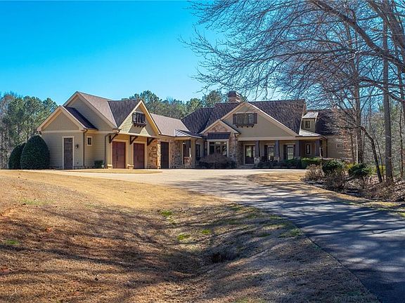 Welcome to Serenity Farm where sophistication meets serenity. Nestled on over 27 acres of tranquil countryside, this architectural masterpiece features over 10,500 sq ft of luxury living, blending Craftsman elegance with resort-style amenities perfect for both opulent entertaining and equestrian pursuits. Step inside to unveil a grand open layout with soaring ceilings, hardwood floors, built-ins, and light-filled expanses including a stately dining room, expansive great room, cozy library/office, home theater, fitness suite, and a bonus recreation level. The gourmet kitchen, fitted with custom granite, high-end appliances, and seamless indoor-outdoor flow, anchors this home's heart. Retreat to any of six sumptuous bedrooms, or enjoy the privacy of a 2-bedroom, 2-bath guest cottage ideal for in-laws or visiting guests. Indulge in the spa-quality lower terrace leading to a relaxing fire pit, hot tub, and pool with breathtaking views over verdant pastures and a reflective pond. Serenity Farm delivers an exceptional equestrian lifestyle with a four-stall barn, riding ring, paddocks, fenced dog run, and expansive pastures ready for horses or hobby farm ventures. Additional features: alarm system, sprinkler irrigation, three-car garage, generous porch and patio spaces, and a rustic yet refined aesthetic throughout. Perfectly placed for high-performing school districts Avery, Creekland, and Creekview this property offers peaceful rural living with convenient access to Atlanta's major thoroughfares.