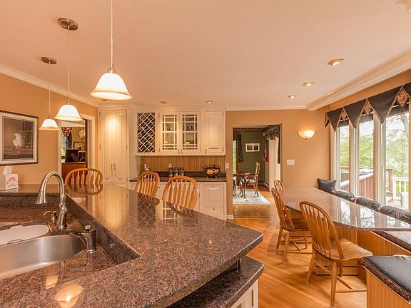 - Kit Dscrp: Pantry, Dining Area, Flooring - Hardwood, Countertops - Stone/Granite/Solid, Deck - Exterior, Kitchen Island, Wet Bar, Recessed Lighting, Window(s) - Bay/Bow/Box, Slider