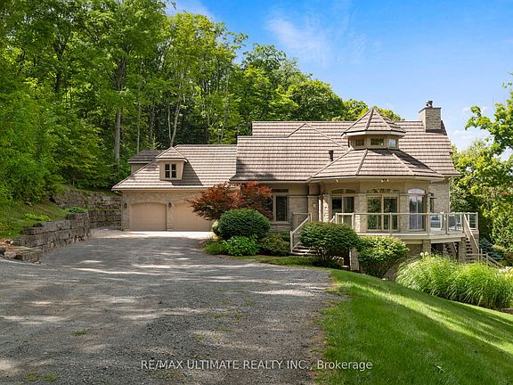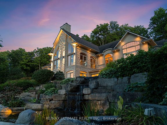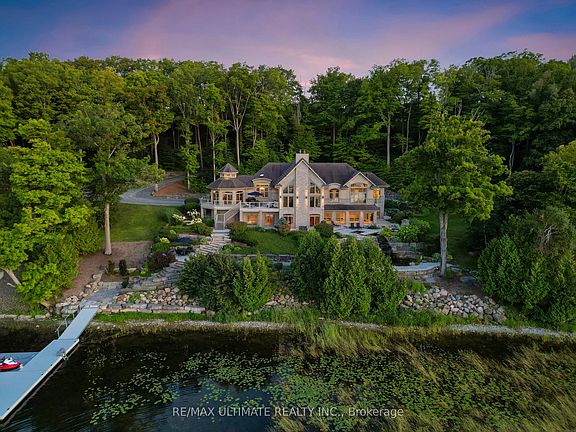 Exquisite Custom Executive Waterfront Estate | Prince Edward County Luxury waterfront living at its finest. This private, custom-built estate offers over 6,600 sq. ft. of finished living space on nearly 10 acres with more than 1,400 feet of natural private shoreline and a premium floating dock system that allows plenty of space for all of your watercraft, inviting endless waterfront enjoyment. As you arrive through a winding drive framed by towering oak & maple trees, you are immediately captivated by the breathtaking water views and architectural elegance of this one-of-a-kind property. The grounds are a masterpiece in themselves, lush perennial gardens, terraced hardscaping, a built in Fireplace overlooking a stunning waterfall flowing into a clear pond that create a tranquil, resort-like setting. Inside, the home is bathed in natural light from expansive windows and doors that perfectly frame the waterfront. Dramatic clear pine vaulted ceilings, hickory plank floors, handcrafted hickory staircases, and beautiful custom cabinetry showcase the homes exceptional craftsmanship. Multiple fireplaces provide warmth and ambiance, while a fully integrated smart home system offers modern convenience. Designed for both grand entertaining and intimate gatherings, this estate flows seamlessly from its open-concept principal rooms to expansive decks and patios overlooking the water. Every detail reflects timeless luxury, from the natural materials to the custom finishes. This exclusive residence is more than a home, it is a private sanctuary, offering the ultimate in luxury, privacy, and waterfront lifestyle all with easy access to the 401, Hospitals, Schools and Via Rail, in one of Ontario's most sought-after destinations.