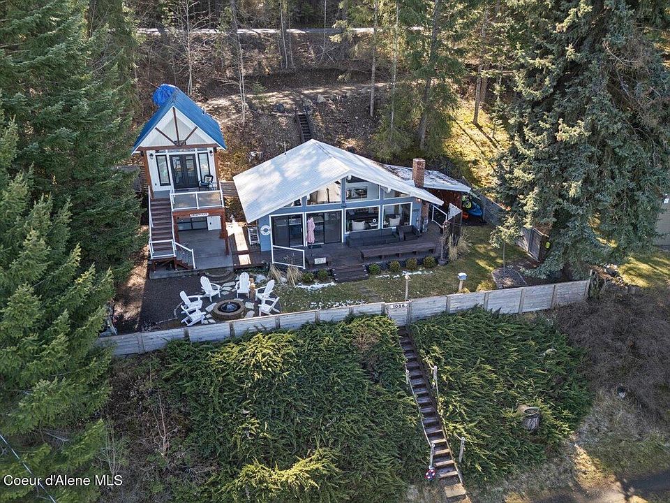 Create a lifetime of memories with this one of a kind, renovated cabin and new guest house. Includes 75' of shared waterfront and dock with designated boat slip. The classic cabin has a modern, sleek kitchen with attached living area (new electric fireplace), 2 bedrooms and a beautifully renovated bathroom. Upstairs is a fun loft for adventurous visitors. The private guest quarters are built over a new 1 stall garage, which has been designed for storage in addition to housing a washer/dryer, utility sink and new water heater. Upstairs, style abounds with a beautiful bedroom, bathroom and walk-in closet. The private deck has views to die for overlooking the lake. Enjoy the privacy of your fully fenced yard, outfitted with various covered seating areas, fire pit and carport area for extra lounge space or storage. Head down the steps to enjoy the nearly 1 acre shared waterfront property and dock (only 3 other owners). Memories are waiting to be made at this one of a kind property!