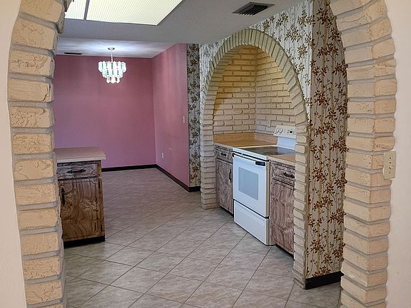 Live in peaceful Kingswood just a short walk to City Center in Port Orange and 10 minutes to the beach. No HOA! This block home is 1781 sq ft, 3 bedroom, 2 bath with a split plan. It is the largest model built in the Kingswood subdivision with beautiful light brick arches in the formal living, dining room and throughout the home. The spacious kitchen has a good sized pantry. The sizable family room adjacent to the breakfast room has a focal brick wall with a wood burning fireplace. Porcelain tile is used in the entryway, breakfast room, kitchen & primary bath. The primary bedroom has dual closets with an archway between that leads to its bathroom with lots of counter space. Appliances that convey are stove, dishwasher, freezer, dryer and new washer. A full Repair & Retreat termite bond transfers to the new owner. Roof is from 2016 & AC 2012.