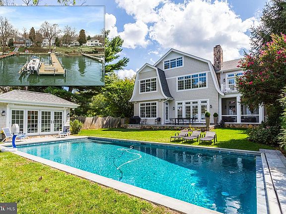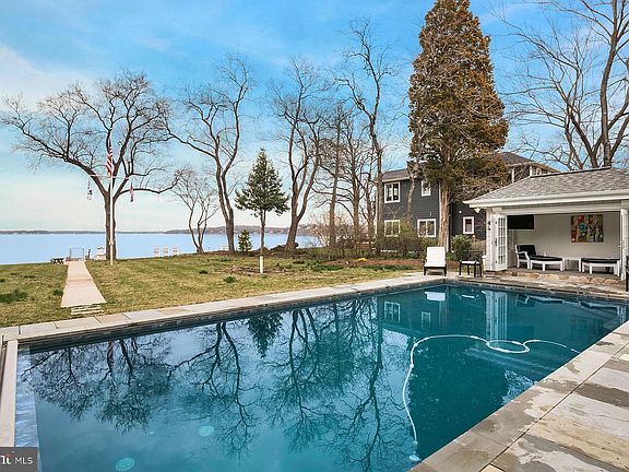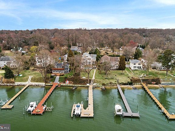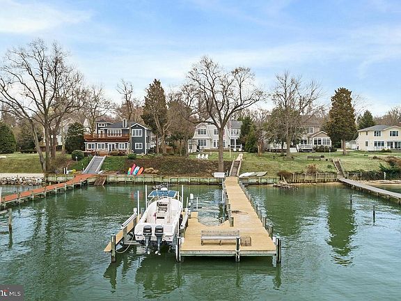 1086 River Bay Road is a custom 5-bedroom waterfront home with incredible attention to detail and stunning Magothy River views. The unique architectural design is the perfect combination of modern appeal, with an open floor plan and ideal flow, with traditionally elegant detailing. The driving force in the design was to bring in the natural light and views, and the architect clearly succeeded. And, the waterside yard is truly a spa-like oasis with a heated in-ground pool and private pier. Built in the Maine waterfront Dutch colonial style, this waterfront masterpiece offers the perfect setting for entertaining family and friends, or relaxing and enjoying the views of the picturesque waterside yard and Magothy River. The outside amenities include a pool house with bi-fold French doors to fully enjoy the pool scene and water views, a New England fieldstone terrace, a screened porch, and outdoor sound system. The private pier, with 4 ft water depth, has a boat lift and two jet-ski lifts. The interior was modeled after homes in the Hamptons and includes antique authentic mid-century modern light fixtures. There are wide oak plank floors, a striking chandelier, and amazing trim detail ~ including wainscoting and an elegant staircase with matching oak railing. Through the foyer is the living room with a fabulous coffered ceiling and a one-of-a-kind Italian antique stone hearth and mantel around the wood-burning fireplace. The living room has French doors that open to the waterside fieldstone patio, and separate door that leads to the screened porch. Everything is perfect, with granite countertops, an oversized marble-top kitchen island with breakfast bar, inlaid custom cabinetry, a gas six-burner Wolf stove with a custom-built stainless steel hood, two Wolf ovens, and Sub-Zero side by side refrigerator and freezer. The formal dining space has custom lighting and a built-in side board with granite top. There is a butler~s pantry with ample wine storage and a beverage cooler, prep sink and counter space, and built-in display china cabinets. Also located on this hallway is a powder room and a mudroom, with laundry, that connects to the oversized two car garage. To the left of the foyer is a spectacular custom home office with raw mahogany paneled walls, coffered ceiling, custom bookcase and cabinetry, and a built-in double-sided desk. There is an attached bathroom so it could be a first floor guest suite. Upstairs there is a luxurious master suite. As you step inside your eyes are immediately drawn to the massive waterside windows and the views that they provide. Wake up every morning with the Magothy River sunrise views and, in the evening, enjoy sunset water views and a crackling fire in the stone-surround fireplace. The suite includes a private sitting room with access to a private waterside deck. There is also a luxe master bathroom with two vanities. This level features two additional bedrooms, one with river views, and each with private bathroom. There is a second laundry on this level. The gorgeous spiral staircase takes you to the third level crows nest. The second level includes a spacious family room, in the space above the garage. The huge family room has room for comfortable seating as well as a pool table; there is also a kitchenette so your friends won~t want to leave on game day! There is even a third washer & dryer in this area in case you have guests who stay for a while. Upstairs from the family room, there are two bedrooms that share a full bathroom. The lower level is currently unfinished; with extra height ceilings, though, it offers additional options for those who want a home theater or dedicated gym space. There are truly too many details to mention; but, for the tech lover, there is a professional security system including interior & exterior cameras, 4 HVAC zones, and 11 flat panel TV~s. Schools include Cape St. Claire Elementary, Magothy River Middle, and Broadneck High School. VIDEO TOUR!
