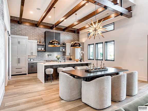 MODEL HOME - 2023 Street of Dreams winner. Built by Art of a Craftsman, this stunning Hills Farm lake house blends modern living with hints of rustic character. The 1.5-story design showcases clean lines, soaring 20-foot ceilings, and an abundance of natural light. Inside, you'll find 4 spacious bedrooms, 5 stylish bathrooms, and 2 offices. Primary suite offers a luxurious wet-room spa escape connected to a custom closet with a secondary laundry. Modern glass railing accents the loft living area, while the oversized 3-car garage provides generous space. Entertain in style at the speakeasy-inspired bar, where moody lighting and upscale finishes create an unforgettable atmosphere. Double doors open to a resort-like outdoor setting featuring an outdoor kitchen and covered living & dining areas. A perfect blend of luxury, comfort, and character, this home is a true showcase of timeless design and modern living. Photos are of similar home.