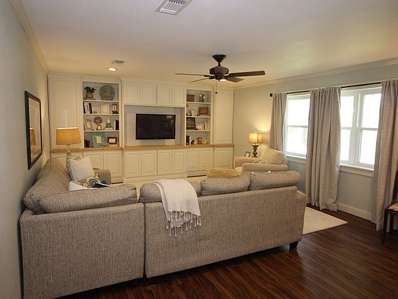 This one is move-in ready! Many big ticket updates over the past few years including new flooring, renovated kitchen with gas range and stainless appliances, new windows, heating/air unit, water heater, roof and septic field line.Lots of built-ins and storage. Pretty setting on a hill with live oak trees out front. Storage building and garden space with over 3 acres of land.