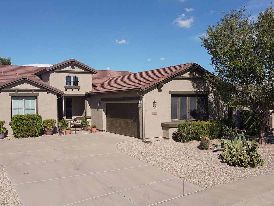 Welcome to Solera at Johnson Ranch - A Premier 55+ Gated Community. Discover comfort and convenience in this beautifully maintained single-story home, located within the sought-after Solera at Johnson Ranch community. Upon entry, you're welcomed by a spacious foyer that sets the tone for the home's inviting layout. The floor plan is thoughtfully designed, with the primary suite, den, and laundry room situated to the right, offering privacy and functionality. To the left, you'll find a guest bedroom and a full bathroom—ideal for visitors or multi-purpose use. The heart of the home features a bright and airy open-concept living area that seamlessly connects the family room and eat-in kitchen. Abundant windows throughout provide ample natural light and create a warm, welcoming atmosphere. Step outside to a fully landscaped backyard that offers a peaceful retreat perfect for relaxing or entertaining. Additional highlights include: Recently painted exterior (2024), 2.5 two-car garage, Access to resort-style amenities, including a clubhouse, planned community activities, and a golf course. Experience the best of active adult living in a serene and secure setting.