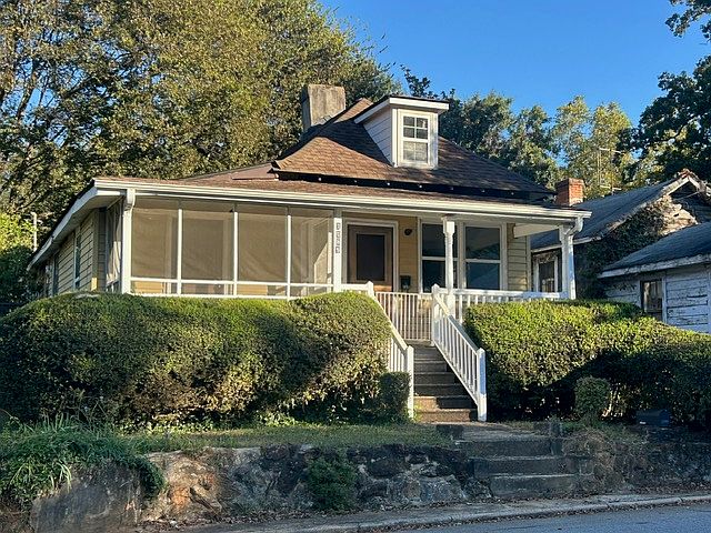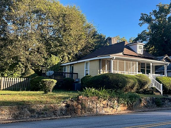 Features spacious kitchen and living room with high ceilings, hardwood floors, large bathroom, 3 bedrooms, and 4 porches. Porches include 1 screened porch, 1 covered porch, 1 wood deck overlooking side yard, glassed-in sleeping porch (for extra social gathering/hammock/chill space/ping pong table). Watch the sunset over town from any of the porches.