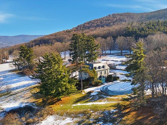 Built in 1866, this French Provençal–inspired stone estate is a rare and distinguished offering, blending historic grandeur with pastoral beauty on 94.56 acres just outside historic Bennington, Vermont. Commanding sweeping mountain views, the property delivers exceptional privacy while remaining conveniently close to town amenities. The main residence offers 9 bedrooms and 7 bathrooms, distinguished by 11-foot ceilings on the main level, extensive decorative moldings, and eight fireplaces that create warmth, character, and architectural depth throughout. Elegant formal living spaces flow seamlessly into a grand dining room with rich mahogany floors, perfectly suited for entertaining on an intimate or grand scale. Outdoors, the estate is equally captivating. A heated Gunite pool and expansive stone patio overlook rolling grounds that include a barn, artist’s studio, three-car garage, and a charming three-bedroom caretaker’s cottage-ideal for guests, staff, or extended family. Privately sited yet ideally located on the outskirts of Bennington, the property offers easy access to shopping, fine dining, and live theater, as well as nearby ski mountains and cross-country skiing. Conveniently positioned just 45 minutes from Albany International Airport and approximately three hours from Boston and Manhattan, this extraordinary stone estate presents a rare opportunity to enjoy timeless elegance, exceptional amenities, and an unparalleled Vermont lifestyle.