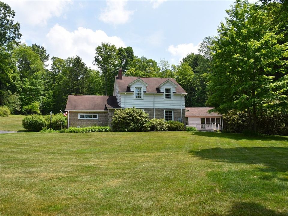 West Mead location, over 2 Acres, wooded lot close to Tamarack Lake, Rec. Complex, schools, and shopping. Stately Living Room with bay window to view nature, WBFP & walk-in spacious closet. Family room addition just off the kitchen to entertain or convert into first-floor bedroom & main bath. enclosed porch to enjoy the outdoors. Outbuilding used as cabin or storage/workshop. Wide patio to set up summer furniture. So many amenities. Hardwood floors, 2 car oversized attached garage. Some screens are missing.
