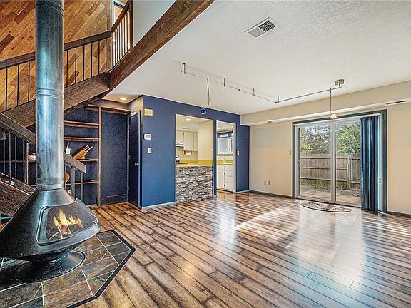 Step back in time with this retro-chic split-level townhome in Quivira Falls! Vaulted ceilings, an oversized attached one-car garage 23' X 14', and a spacious living room with a balcony-style bedroom layout. Newer Pella windows and doors. The kitchen features an eating bar and a convenient laundry room, and the private, fenced patio is perfect for relaxing. Community perks include a clubhouse, pool, tennis courts, and trails winding through rolling, tree-lined hills. All this is near Johnson County Community College.
