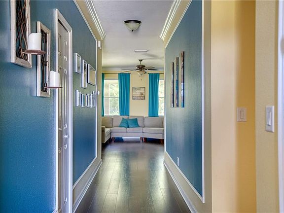 - Interior Features: Ceiling Fans(s), High Ceiling(s), Crown Molding, Walk-In Closet(s), Window Treatments, Open Floorplan, Solid Surface Counters, Eating Space In Kitchen, Kitchen/Family Room Combo