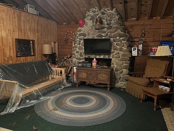 Situated on 1.95 acres, this two bedroom, one bath cabin is nestled back on a wooded lot and ready for someone needing to get away for a weekend or a year round home. Has well, septic (Location of the septic is unknown and not used during their ownership), electric. Ready for a little tidying up but can make a great retreat. All contents are included.