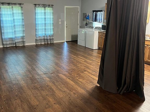 It has a large, covered RV pad, a small storage building, and a covered patio. Washer and Dryer provided in apartment. Utilities not included in rent.