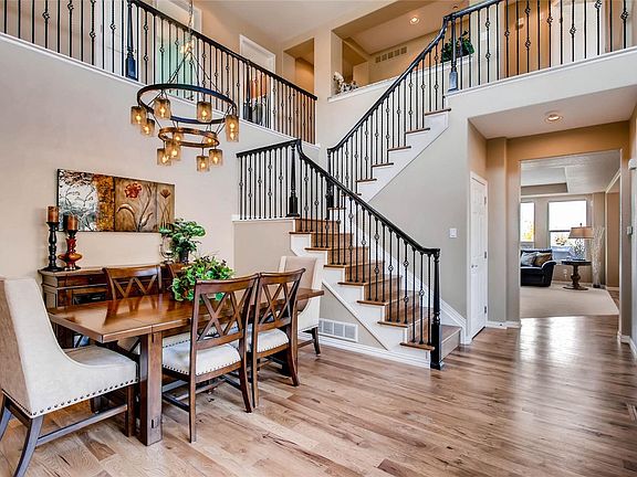 Check out this gorgeous 4 bedroom 3 bath home in sought after Highlands Ranch! Stunning panoramic views of the mountains & city! Kitchen features 42" cherry cabinets, stainless steel appliances, granite counter tops and gleaming hardwood flooring. Formal living room AND formal dining room, with access to a beautiful side courtyard. Master bedroom is spacious and offers a luxurious 5 piece en-suite bath & generously sized walk in closet. Two additional bedrooms upstairs include their own desk areas and share another full bath. Upstairs laundry makes for easy living! Newer carpet & extensive cherry hardwood floors, 3 car tandem garage, and an open walk out basement ready for your finishing touches! If you live in Colorado, why not enjoy the mountains & watch the beautiful sunsets every night from a lovely deck? Don't miss out - this highly desirable home is a MUST SEE!