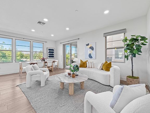 Live large in this 2,243 sq ft townhome where every bedroom is en-suite! Ground-floor suite is perfect for guests or a home office. The light-filled living room opens to a private patio for quintessential indoor/outdoor living. Gourmet kitchen boasts granite counters, stainless steel appliances, a central island with breakfast bar, and upgraded range hood. Luxurious primary suite features double vanity, soaking tub, separate shower, and walk-in closet. Double-pane windows, central A/C, recessed lighting, and a 2-car side-by-side garage. Enjoy community trails, clubhouse, and bocce court. Walk to Sprouts, H-Mart, Starbucks, and dining. Near BART, top schools, tech hubs, and freeways 101/680/880.