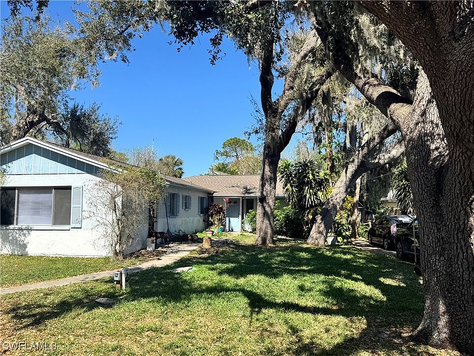 Amazing Investment Opportunity!!! Only duplex in the neighborhood! Nestled on the most quaint street right across the street from the Caloosahatchee river! Both Units include great room, open kitchen, two bedrooms and one and a half bathrooms. Master bedrooms have attached half bath. Back unit includes screened porch/lanai. NEW ROOF in 2024. Interiors renovated and updated. Close to Downtown Fort Myers river district and easy access to I75. Call to schedule a private showing!