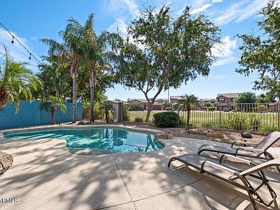 Seller is offering a concession of up to $10,000 to help with rate buy down and/or closing costs. Beautiful home with a fantastic pool in highly sought ''Spectrum'' subdivision. TWO NEW A/C units (only 3 months ago), Solar panels, tile flooring throughout, granite countertops, SS appliances, gas cooktop, dual ovens, large SS single basin sink, island, walk-in pantry, & abundant cabinet & countertop space. Low maintenance backyard with extended patio, gas fire pit, built-in BBQ, travertine flooring, front courtyard, & no neighbor behind this lot. Playground, basketball court, tennis courts, bocce, & elementary school are right around the corner.