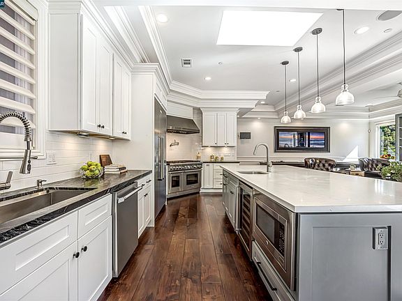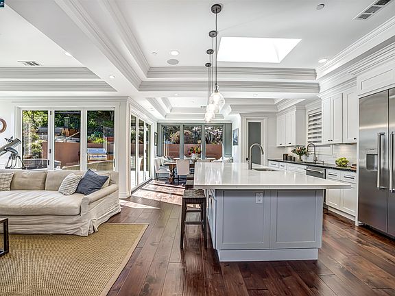 Tranquil Entertainer’s Dream Home Built in 2016. Expansive 3,779 SF, 5 BD, 4.5 BA home w/ incredible floor plan on .33 acres. For families looking for gracious living, soaring ceilings & entertaining spaces-- this home has it all! Incredibly bright, open & airy kitchen/great room w/ custom fireplace, oversized island w/ seating for 6 & large built-in breakfast nook. Designed for chefs, there is a 48in built-in Thermador range & refrigerator, wine fridge, 2 sinks, walk-in pantry, granite & quartz countertops & custom white shaker cabinetry. Wonderful Cantina bi-fold style doors in the kitchen/family room fully open to embrace indoor & outdoor California living. Gracious formal dining room for special occasions & 2nd family room downstairs w/ wet bar. Floor plan allows for easy single story living w/ primary ensuite bed w/ fully updated bath, guest ensuite & office or 5th bed & kitchen/great room all on the main level. Family room, 2 additional ensuite beds, home gym, laundry room & wine cellar all on lower level. Engineered hardwood flooring throughout. 2 car detached garage w/ covered breezeway. Incredible outdoor spaces include a built-in BBQ area, hot tub, grassy play area & chicken coop. A+ location - close to Lafayette/WC, BART, HWY 24 & 680. Award winning Lafayette schools.