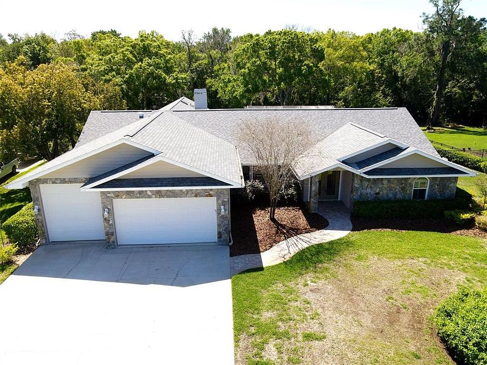 Updated executive home with brand new roof situated on a dead end street in a small development and offering peace and quiet yet close to all conveniences. The property sits on over half an acre of cleared land but also includes an additional 1.4 acres of conservation. Watch the deer in your backyard! This renovated home offers a three-way split plan with vaulted ceilings and lots of natural light in all spacious rooms. Gorgeous kitchen with granite countertops including central island and stainless steel appliances including wine refrigerator. You will love the family room with its wood burning fireplace and the expansive living/ dining space which features sliders to the outside area. There was two master suites, both with walk-in closets and en-suite bathrooms with one of these doubling as a pool bath. Two more spacious bedrooms share a third bathroom. The outside space is exceptional and features a heated, salt water pool and spa, huge paved lanai (both open and covered) and screened enclosure. A superb place to relax and enjoy the extensive backyard. Three car garage completes this property, one of the garage bays having a 10 ft entrance with storage at the back and air conditioning. Move in ready in such a great location. Call now to see this exceptional home.