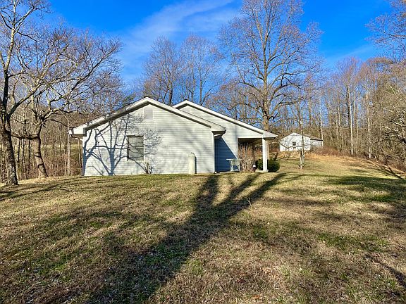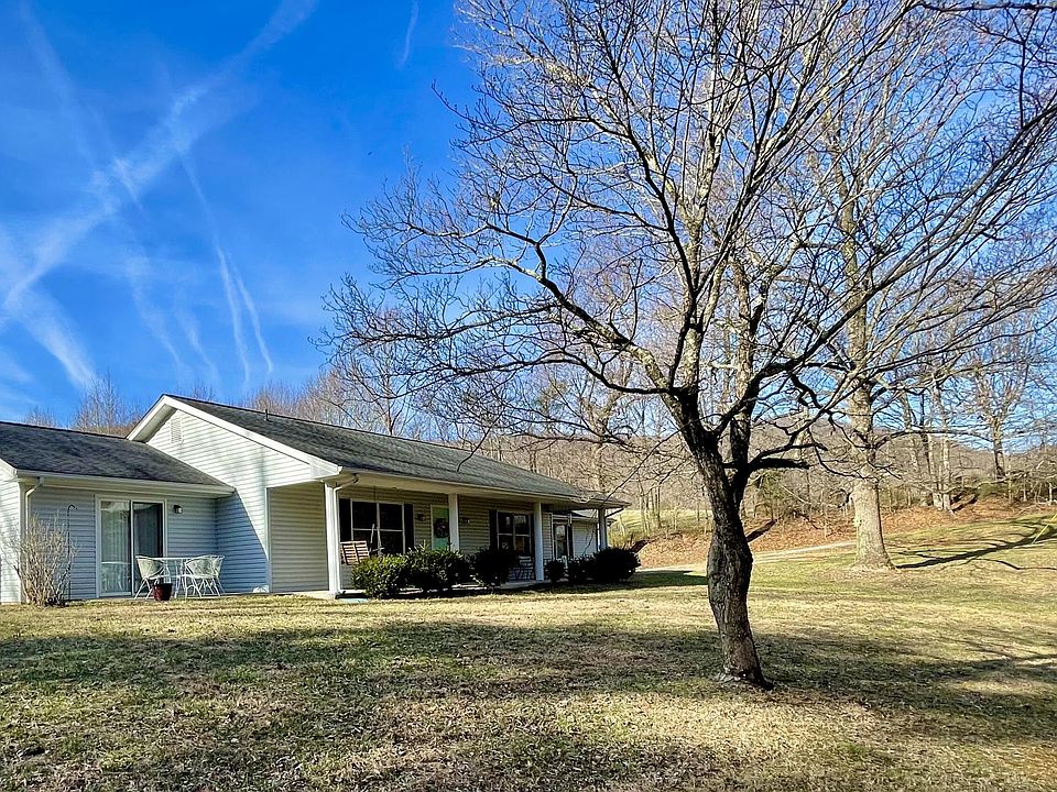 Move right in and enjoy one level living with beautiful views on over 7 acres! You will enjoy privacy and lots of wildelife while sitting on your front or back covered rocking chair porches. There is a huge detached workshop with electricity and mountain views in every direction. Inside you'll find an oversized custom kitchen, 3 bedrooms including a master suite with sliding glass doors to patio, a formal living room and a den that can also be in-law quarters. The den has a full bath with a whirlpool tub, mini kitchen with a bar, sliding glass doors to patio and a separate entrance on the side of house. There are ceiling fans throughout, plantaion blinds, ceramic tile, newer heat pump (6-7 years old), and a newer roof. Propane tank for gas logs.