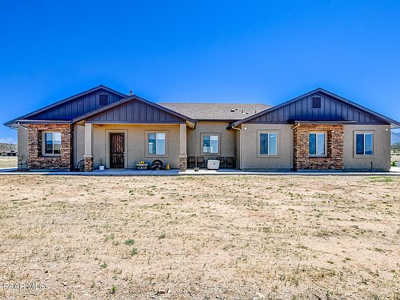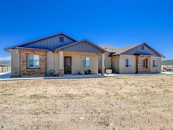 Discover the perfect blend of comfort, space & scenic beauty in this custom-built home located in the desirable Prescott Prairie community. Situated on a 2-acre lot, this gorgeous home was designed with both function & style in mind all while taking in the expansive mountain views. Step inside to an open floor plan ideal for entertaining, featuring a dream kitchen with ample space & storage. You'll love the smart floor plan w/ office space & 2nd/3rd bedrooms w/ ensuite baths. As natural light pours in through expansive windows highlighting the stunning mountain views that surround the property. The 3 car garage has plenty of room for toys & 400amp panel to build a shop! The fenced backyard provides plenty of room for outdoor living while a strong producing well ensures your future here.