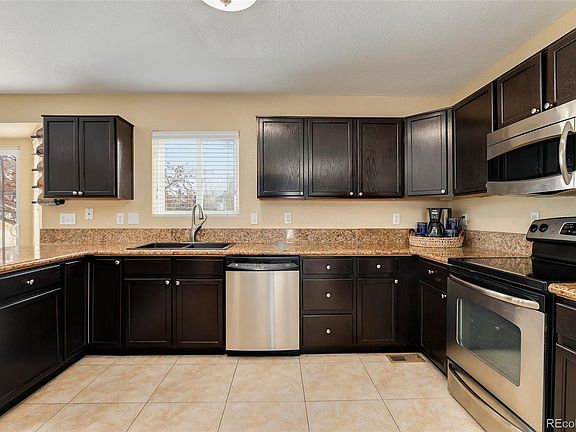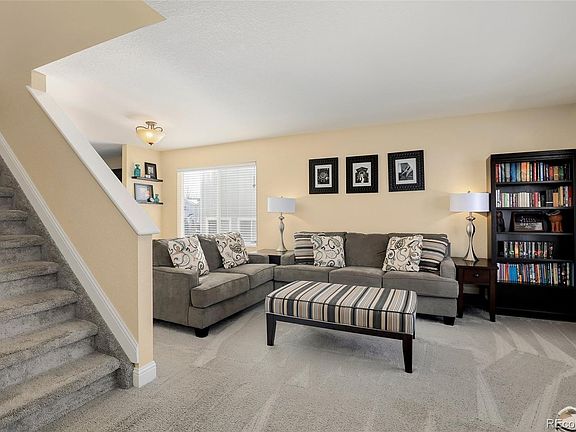 Lovely Parker home is an ideal blend of traditional features and modern conveniences. Natural light and space abound throughout this well-maintained 2-story abode. A dramatic 2-floor foyer flows into the elegant formal living and dining rooms. Open concept kitchen, breakfast nook & family room make everyday living a breeze. Substantial kitchen features expansive granite countertops, stainless steel appliances, a pantry & counter seating. Easily transition to outdoor entertaining through the bayed sliding door off the breakfast nook that opens out to the deck. Dine under the stars, BBQ, or soak up some sunshine on the sizable deck. Back inside, all 4 sunny bedrooms and the laundry closet are conveniently located on the upper level. Master suite hosts an en-suite bathroom and a walk-in closet. Bonus loft space is perfect for a library, playroom, or office. Finished basement provides excellent additional living space with a large room and a bathroom; making for a great guest suite, rec room, or home office. Nice outdoor space includes a charming front porch and a spacious fenced backyard boasts mature flowering trees that provide excellent shade in the warmer months. Ideal central Parker location close to schools, parks, trails, and all that downtown Parker has to offer including the library, community pool, shopping & dining.