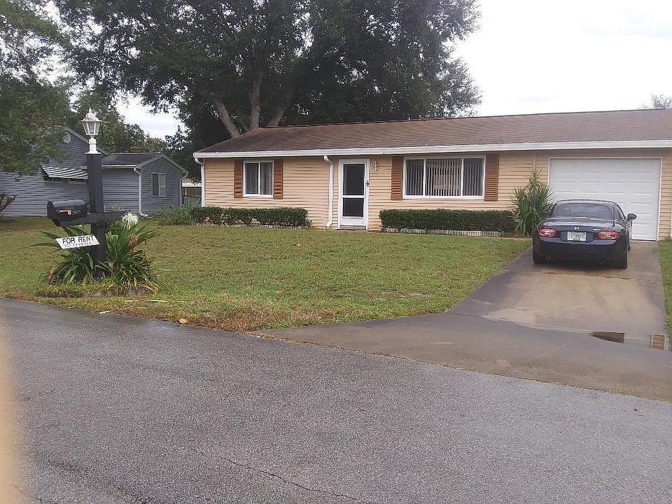 Beautiful 1 car unfurnished home on .28 acre lot ....GRANITE kitchen and bath and FLOORS, with new half bath . Double wide stand up shower. in active senior (55+) community with 24 hour security, 6 pools (one indoor) 5 hot tubs, 2 gyms,2 auditoriums, golf, tennis, bocci ball,shuffle board, pickle ball , on sight restaurant...golf cart friendly...., walk to Walmart, golf cart access to onsite activities and restaurant ( with bar) horse shoes , pools etc. over 100 clubs....bingo ...too much to mention . One month security deposit. No pets .Background check and 660 minimum credit score...security deposit required. Monthly rent is $1195.00 and the landlord pays hoa's, garbage, and basic cable. Security deposit is equal to one months rent. Call for appointment to see. three five two, two three nine zero zero one zero...
