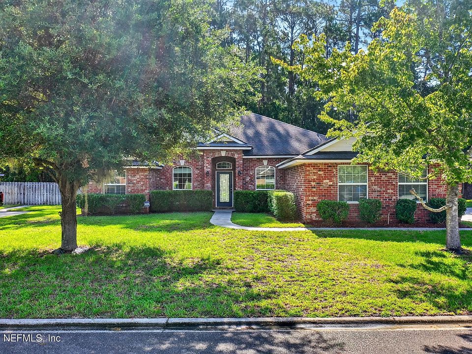 This home has so much potential and is minutes to I-10, 295 and First Coast Expressway, yet set away in lovely, established, low fee, Glen Eagle subdivision! Flexible, open central living space leads to private, fenced backyard bordering the preserve! Eat in kitchen overlooks living area, and offers tons of beautiful custom cabinetry and gleaming stone countertops. Split floorplan features huge master suite on one side of the home, with walk in closets and luxurious master bathroom. Three additional bedrooms and 2 more full bathrooms on opposite side of home. Huge, side entry, 2 car garage with the potential to be a family room, den or additional bedroom. Home has no power. Condition of mechanicals unknown. Short sale sold as -is.
