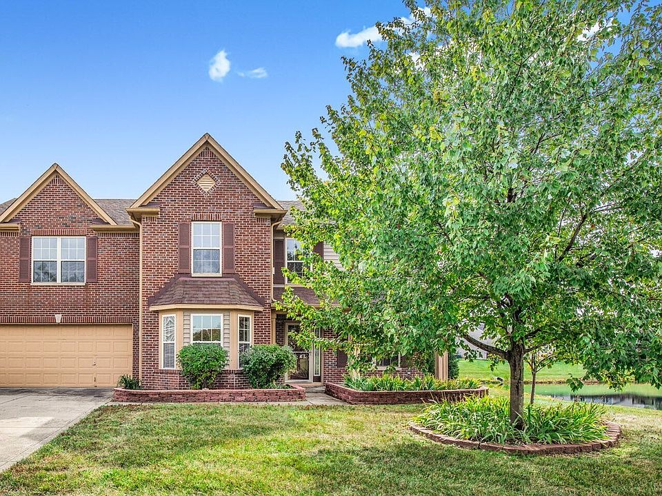 Spacious 4-bedroom home featuring a full brick front and oversized 2-car garage with extra storage. Enjoy a private wooded lot with a tranquil pond view. The main level offers a large family room open to a spacious eat-in kitchen equipped with a suite of stainless steel appliances, a center island, and a sunny breakfast area. Enjoy a seperate formal dining room with bay windows, a private home office/den and a cozy loft area with a gas fireplace. Additonal features include built-in surround sound speakers, smart wiring, and wood and ceramic tile flooring throughout. Bedrooms offer large walk-in closets with built-in storage and shelving. Step outside and enjoy the expansive, fully fenced wood deck and grilling station, perfect for entertaining or relaxing in the peaceful natural setting. The community offers a playground and plenty of green space. Great Fishers location!
