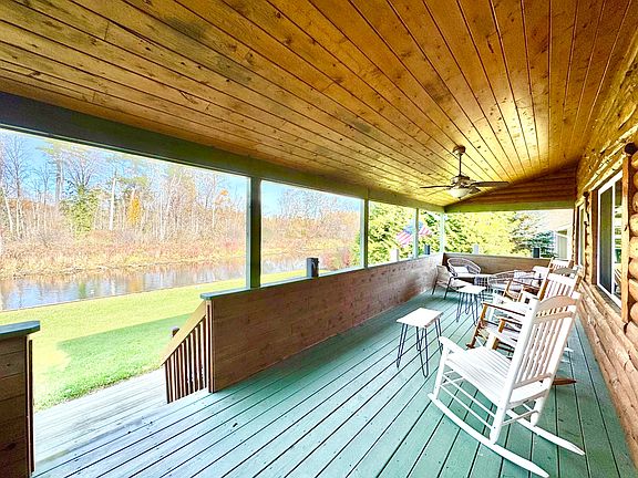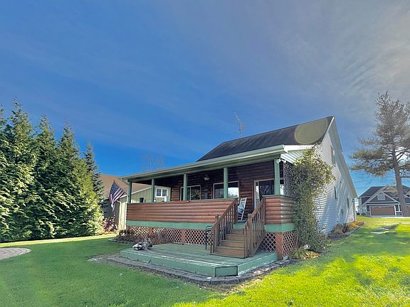 Unwind with your morning coffee on the back porch as you take in peaceful channel views and watch eagles, deer, and other wildlife wander by. This classic Up North retreat offers 3 bedrooms and 2 bathrooms, tucked away on a quiet cul-de-sac in a welcoming and active Chippewa Lake community. Enjoy direct water access step onto your boat from your private dock and take a short cruise to the 800-acre, all-sports Chippewa Lake. Inside the home features a main-floor primary bedroom, a beautifully crafted hickory kitchen with Brazilian clear coat finish, a spacious pantry, tongue and groove cathedral ceilings, and expansive windows that fill the space with warm natural light. Gather outdoors around the newly installed brick-paver fire ring for s'mores under Northern Michigan's star-filled skies. Recent upgrades include new washer and dryer, a propane heater added to the attached garage, garbage disposal, installed water softener, new landscaping and fresh paint throughout. The home is being sold furnished so this charming getaway is ready for immediate relaxation, exploring, and enjoying lake living at its best.