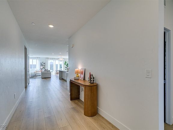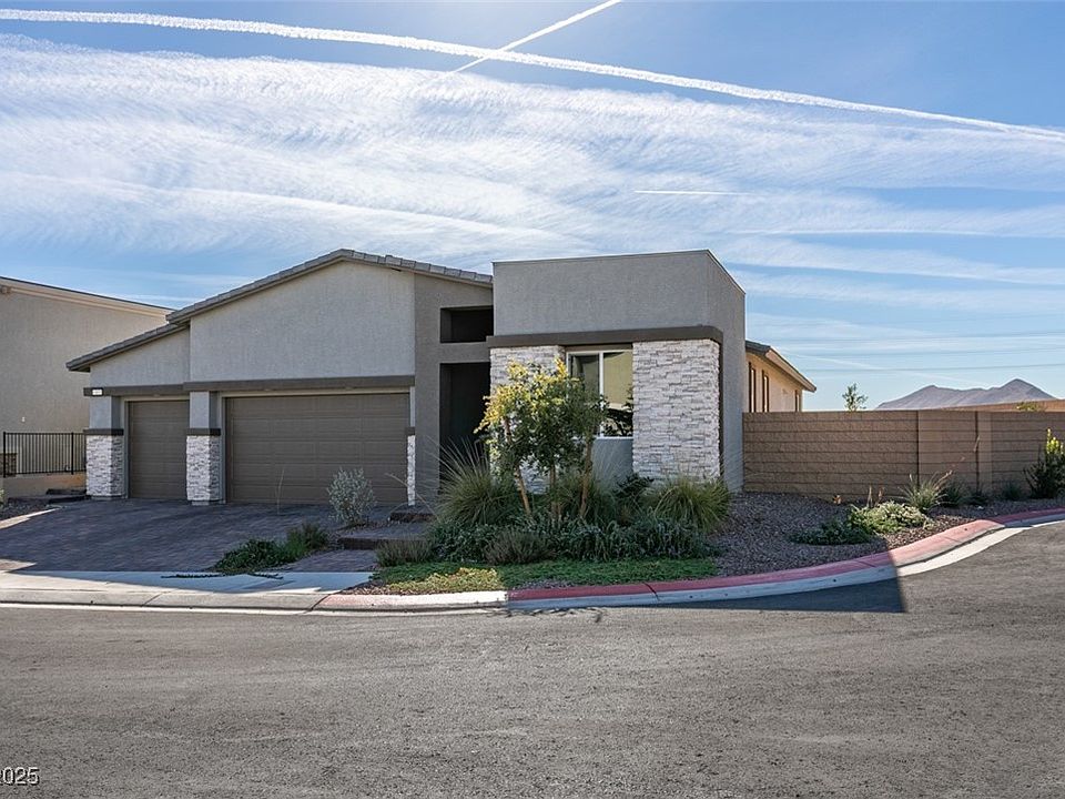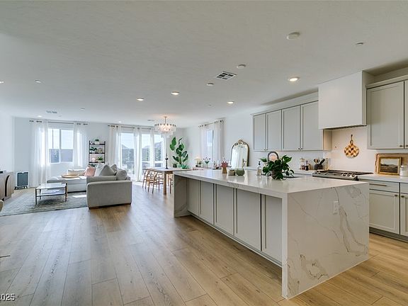 BETTER than new! This 2024 Lennar-built NextGen Pioneer home sits on a huge lot and stands out with upgrades not offered by the builder—plus one of the few with a fully finished backyard. The main home features custom soft-close cabinetry with glass bar uppers, extended island and surround, double-sided marble quartz waterfall edge, triple-thick counters, LVP flooring, 5” baseboards, and Santa Fe texture with Sherwin-Williams Extra White paint. The owner’s suite boasts a custom walk-in shower with rain head and mosaic tile. The NextGen suite offers its own living area, kitchenette with upgraded counters, and in-closet washer/dryer—ideal for guests, multi-gen living, or rental income. The backyard retreat features a 15’ swim spa, gas fire pit, and raised patio deck with Las Vegas views. EV charger prewire, soft water, reverse osmosis, and designer lighting complete this exceptional home! You MUST come check this one out!