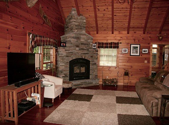 A peaceful, private oasis just 15 minutes from Corning. Cozy up to the stone fireplace in this beautifully updated open log home. Enjoy entertaining in the open kitchen, extending onto a huge deck overlooking the pond and 15 acres. Dip in the private hot tub from the first floor master suite with walk in closet. Wet bar, living room and second master suite in the fully finished walk-out basement. All new kitchen, bathrooms, appliances, systems!