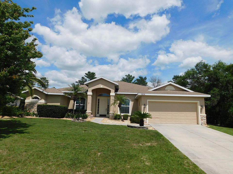 4 bedrooms, 2 and 1/2 baths home. Oversized 2 car garage. In ground bird cage screened Pool/spa retreat. Chain link fenced backyard. Living room. Dining room. Plus spacious Kitchen with ample cabinets, counter space and stainless steel appliances overlooks Family room. Split bedroom plan. Large Master suite features tray ceiling, double closets. Updated spa like bath with split double sinks, garden tub and walk in shower. Updated tile and laminate flooring throughout. Your oasis pool area has convenient half bath and childproof fence. Home is located is popular SW Ocala neighborhood. So convenient to all your needs. Plus public library, park and schools. Sellers purchasing 1 year home warranty for Buyer at Closing.