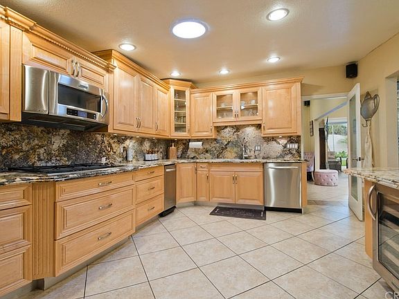 Granada Hills Charter high school district!!! Welcome home to a front yard sprawling with curb appeal, iron gated parking, lush green landscaping, two car garage & covered RV access. Enter the home through double iron doors into a spacious living room, dining area, family room & oversize kitchen. The living room features smooth high ceilings, crown moldings, recessed lighting, custom tile floors throughout, & opens to dining area. Living room also features a dual pane sliding glass door overlooking scenic views of the yard. The home is bright throughout with large dual pane windows all around. The kitchen is upgraded with custom cabinetry, custom granite counter tops, granite back splash, stainless steel dual oven, stove, microwave, wine cooler, dishwasher, steel sink, trash compactor, and recessed lighting. The master bed includes tile floors, smooth ceilings, closet, dual pane window, & a private on suite master bath. The master bath features custom tile floors, dual sink vanity, and custom tiled shower. The second bath is fully customized & shared by the remaining two bedrooms which feature high ceilings. Backyard is accessed through the family room or living room & features tiled concrete slab, built in barbecue, peninsula counter, stack stone accents, storage drawers, outdoor mini fridge, power outlets & large grassy area. Upgrades include newer roof, updated central HVAC, copper plumbing, newer painted interior/ exterior & so much more.