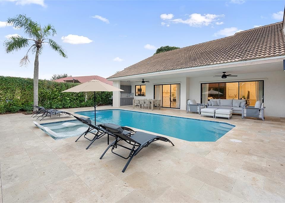 Welcome home to this updated 4 bedroom, 2.5 bathroom, heated pool home with a newly renovated backyard for hosting. "A" rated school district. This home boasts a fully fenced, private backyard with a heated pool, patio, circular driveway and plenty of room for entertaining friends and family. This home is in a beautiful community with quick access to major roads, all things shopping, dining and more. Furniture can be included. No HOA.