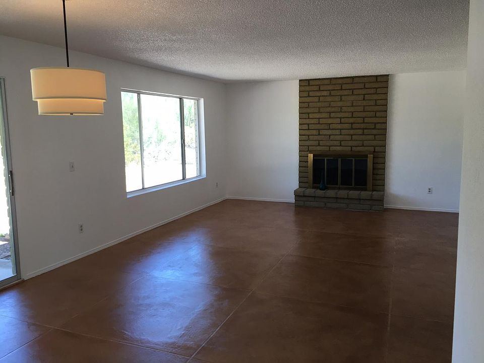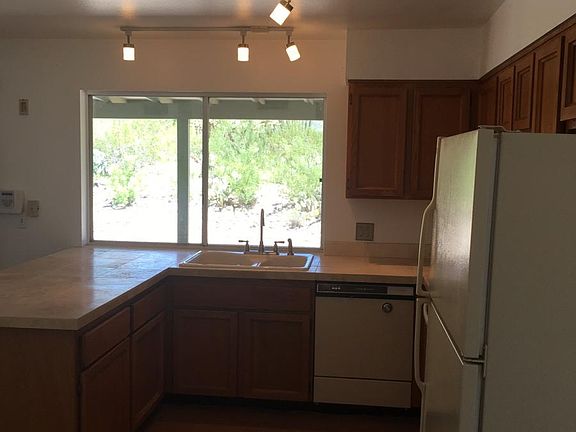 PLEASE DO NOT DISTURB TENANTS. Prestigious and peaceful Northeast Tucson. Secluded and utterly private, yet minutes to shopping and schools. Spacious, bright, and open 3 bedroom home set on 3.3 acres in beautiful Northeast Tucson. A hidden treasure perched on a hill in the middle of the desert, with sweeping views of the valley below and nearby mountains. 1600 square feet ranch-style home includes 3 bedrooms, 2 baths, large living/family room with brick fireplace, and open kitchen with dining room. Large, covered back patio. Attached 2 car garage with storage room, and laundry room with washer and dryer. Tasteful, scored concrete floors throughout (no carpet), updated fixtures and appliances. Travertine kitchen counter. Storage shed. Central heat and AC. Large picture windows. Sliding glass doors that lead onto the large patio. Additional storage shed. Solid brick construction, and a very livable floorplan. And lots of room to roam! Tanque Verde School District. Agua Caliente School is a five minute walk away. 8 minute drive to grocery shopping, stores, and restaurants. Minutes from the base of Mt. Lemmon, Agua Caliente Park, and Milagrosa Canyon. A wonderful, quiet, peaceful retreat surrounded on all sides by the desert, yet close to conveniences, schools, and natural attractions. Have the mountains be your neighbors! Pets upon approval. Local, responsive landlords. Available first week of May. Calls or emails only; no texts please. PLEASE DO NOT DISTURB TENANTS. Tenant is responsible for all utilities including water, trash, electric and internet/cable.First and last months' rent plus security deposit of $1495 due upon move-in.
